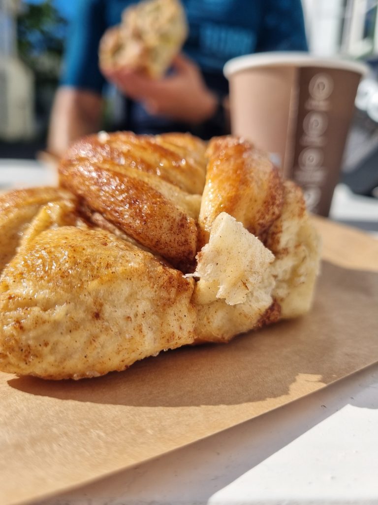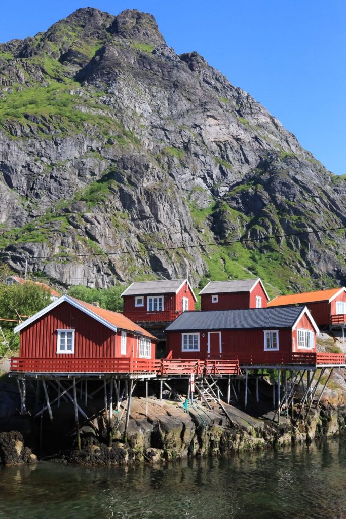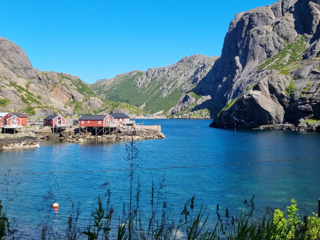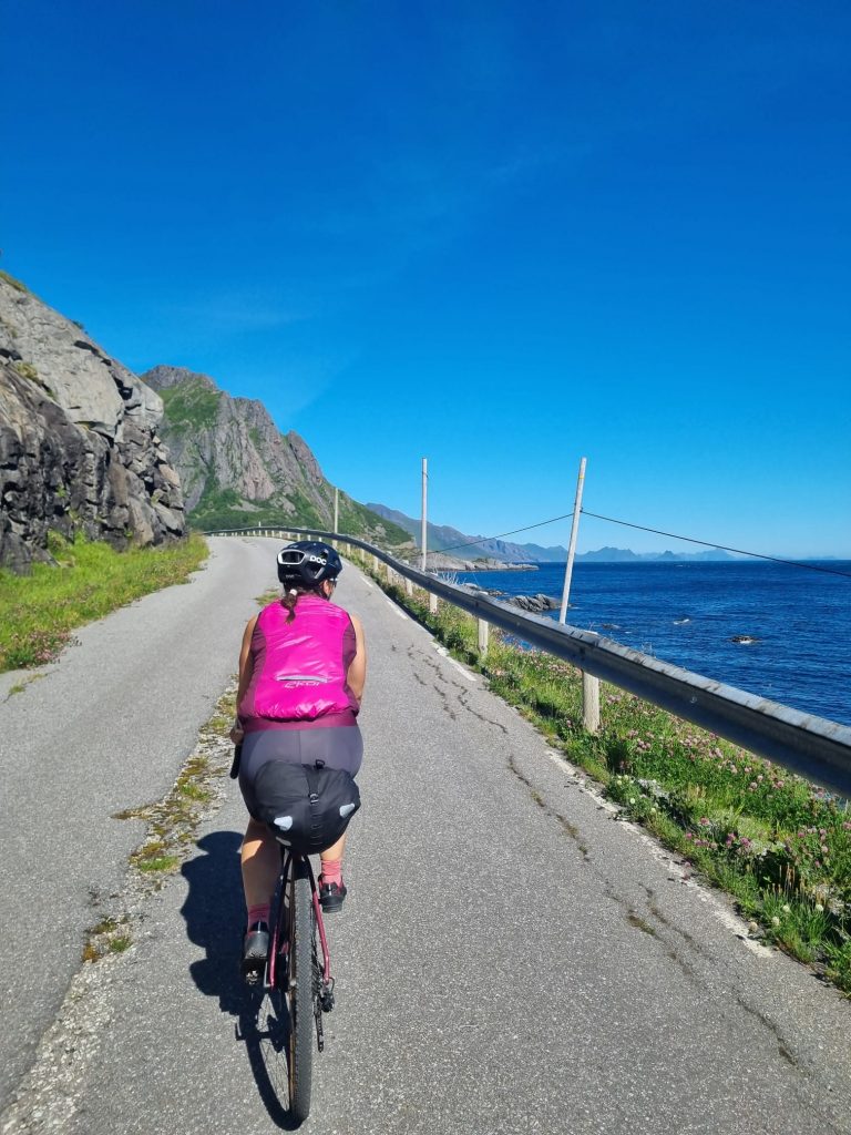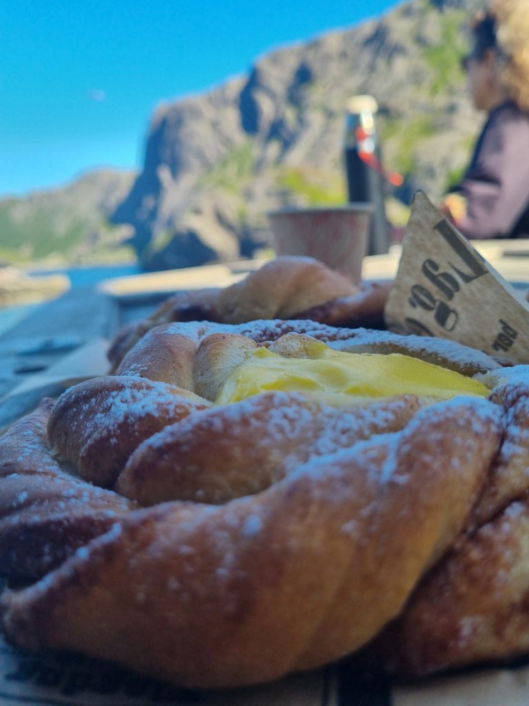 Die Hitze im Zelt weckt uns früh und mit viel Abenteuerlust im Bauch brechen wir auf. Das Nordmeer glitzert im Sonnenlicht und schroffe Berge schießen aus dem Nichts empor. Rote Häuser säumen den Wegesrand, den ich mit einem Strahlen im Gesicht entlangradel. Die Landschaft ist hügelig und von vielen kleinen Kurven durchzogen. Nach ein paar Kilometer landen wir in der südlichsten Stadt – in Â. Und frühstücken die wahrscheinlich besten Kanelsnur dieser Welt.