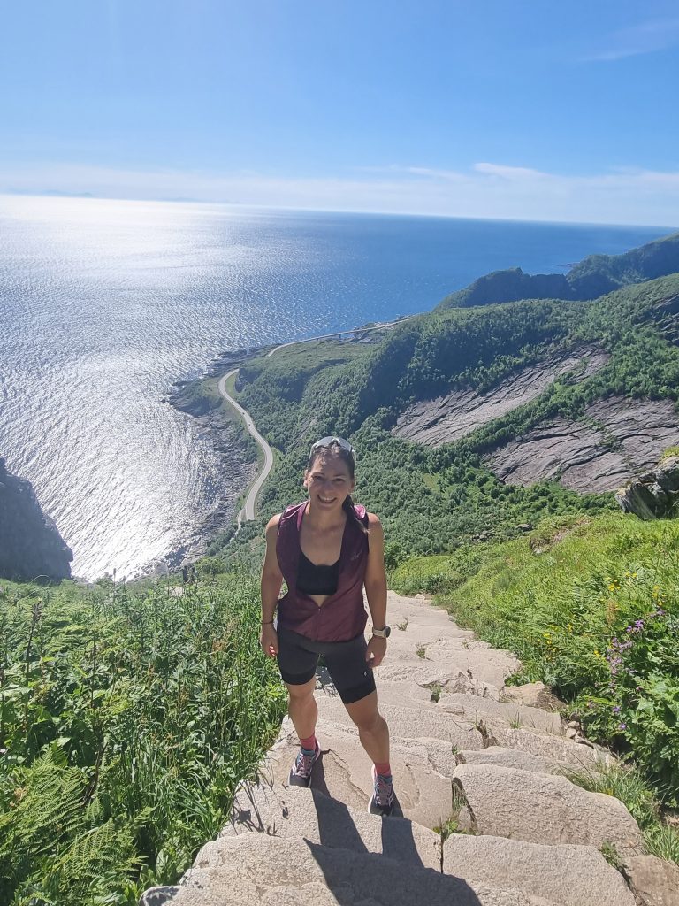 Je höher wir kommen, desto stockender geht es voran. Vorsichtig wandern wir auf den engen Stiegen an vielen anderen Touristen vorbei, die teilweise in Gummistiefeln mit Handtasche oder aber in Hightech-Wanderkleidung vor der grandiosen Aussicht posieren und eine Pause einlegen. Einsamkeit geht anders. Doch auf dem schon recht vollen Gipfel angekommen, entschädigt die unglaubliche Aussicht für alles. Und ich bin noch ein Stück mehr in das tiefe Blau und das satte Grün der Natur verliebt. Einfach unglaublich!