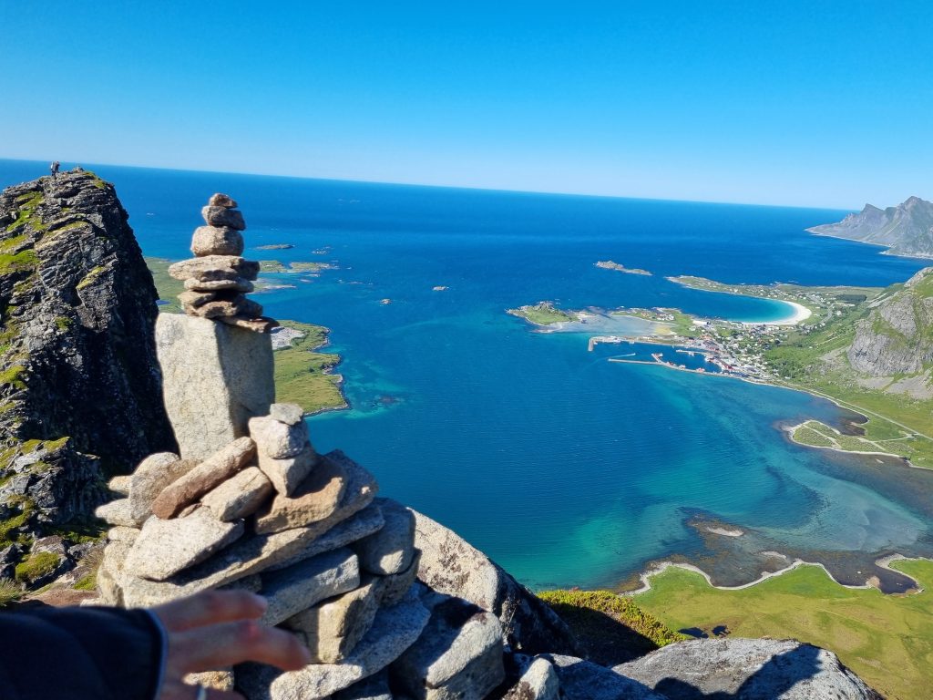 Da wir dieses Mal viel Zeit hier genießen dürfen und unsere Lofoten-Bikepacking Tour mit circa 730 km (inklusive aller Extra-Schleifen) relativ kurze Tagesetappen zulässt, haben wir uns entschieden Norwegen auch in Wanderschuhen und von oben zu sehen.